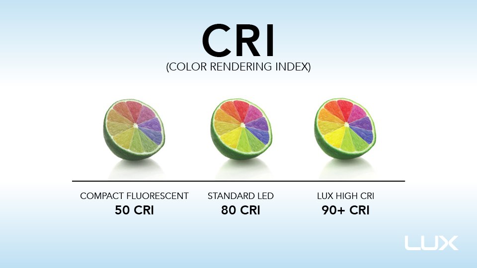 Technical Definition: CRI (Ra) is a scale from 0 to 100 that measures a light source’s ability to reveal the true colors of objects compared to natural sunlight (which has a CRI of 100).